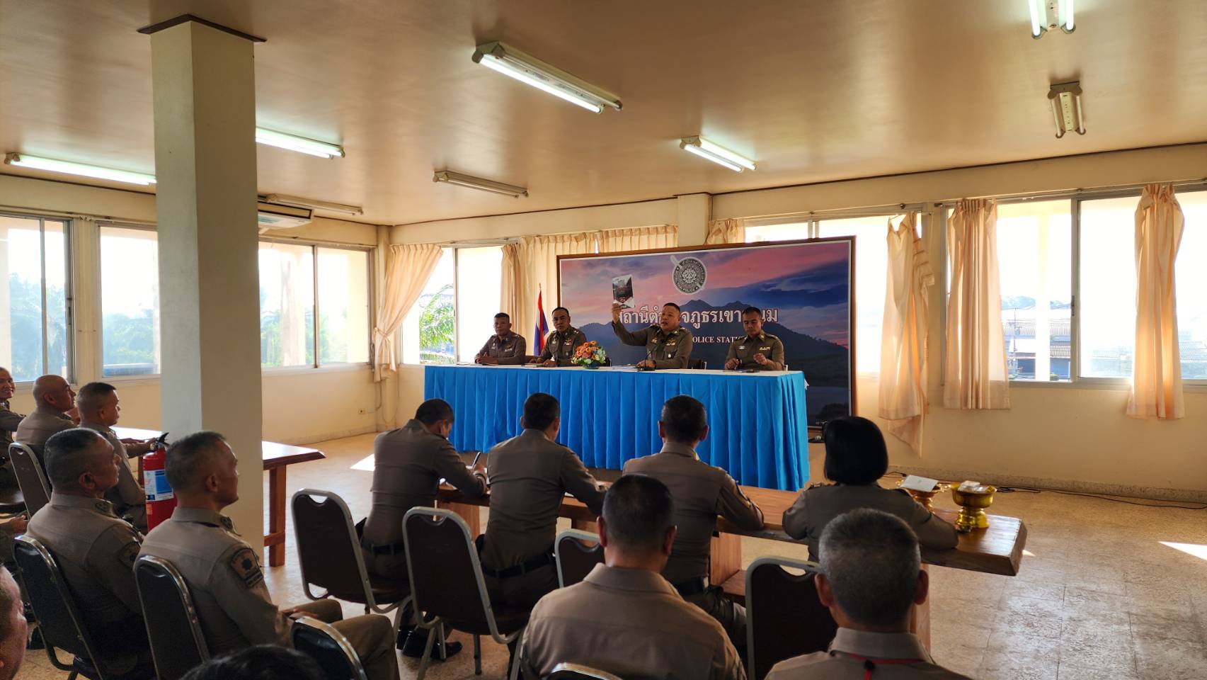 เมื่อวันที่ 10 มีนาคม 2568 เวลา 09.00 น. พ.ต.อ.เจนภพ บุตรกินรี ผกก.สภ.เขาพนม ประชุมข้าราชการตำรวจ สภ