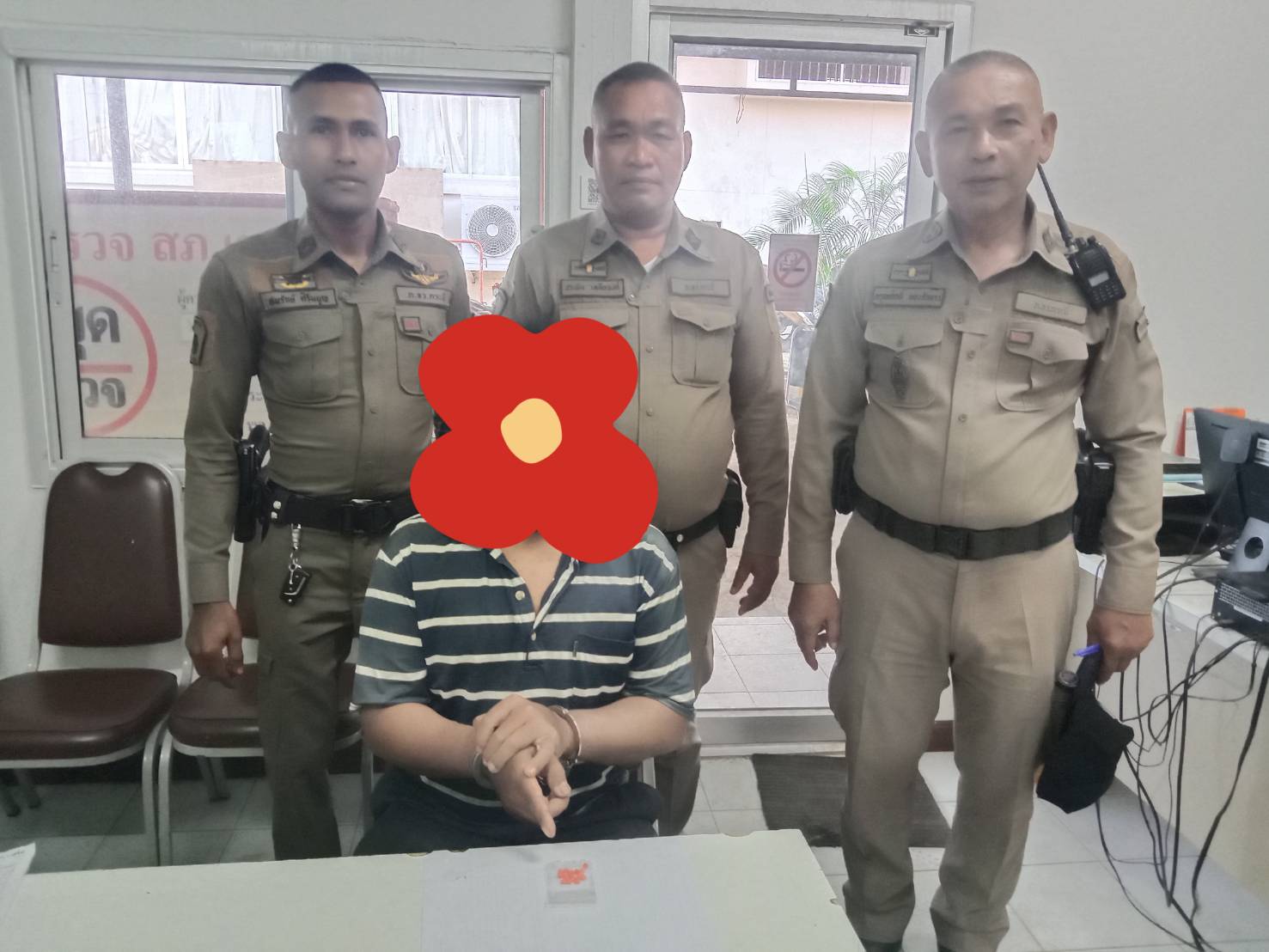 -ว.20 ผู้ต้องหา พร้องของกลางยาบ้า จำนวน 17 เม็ด น้ำหนักตัวยา 1.3 กรัม โดยกล่าวหาว่า “มียาเสพติดให้โทษประเภท 1 (ยาบ้า) ไว้ในครอบครองโดยไม่ได้รับอนุญาต” นำส่ง พงส.สภ.เขาพนม ดำเนินการตามกฎหมาย