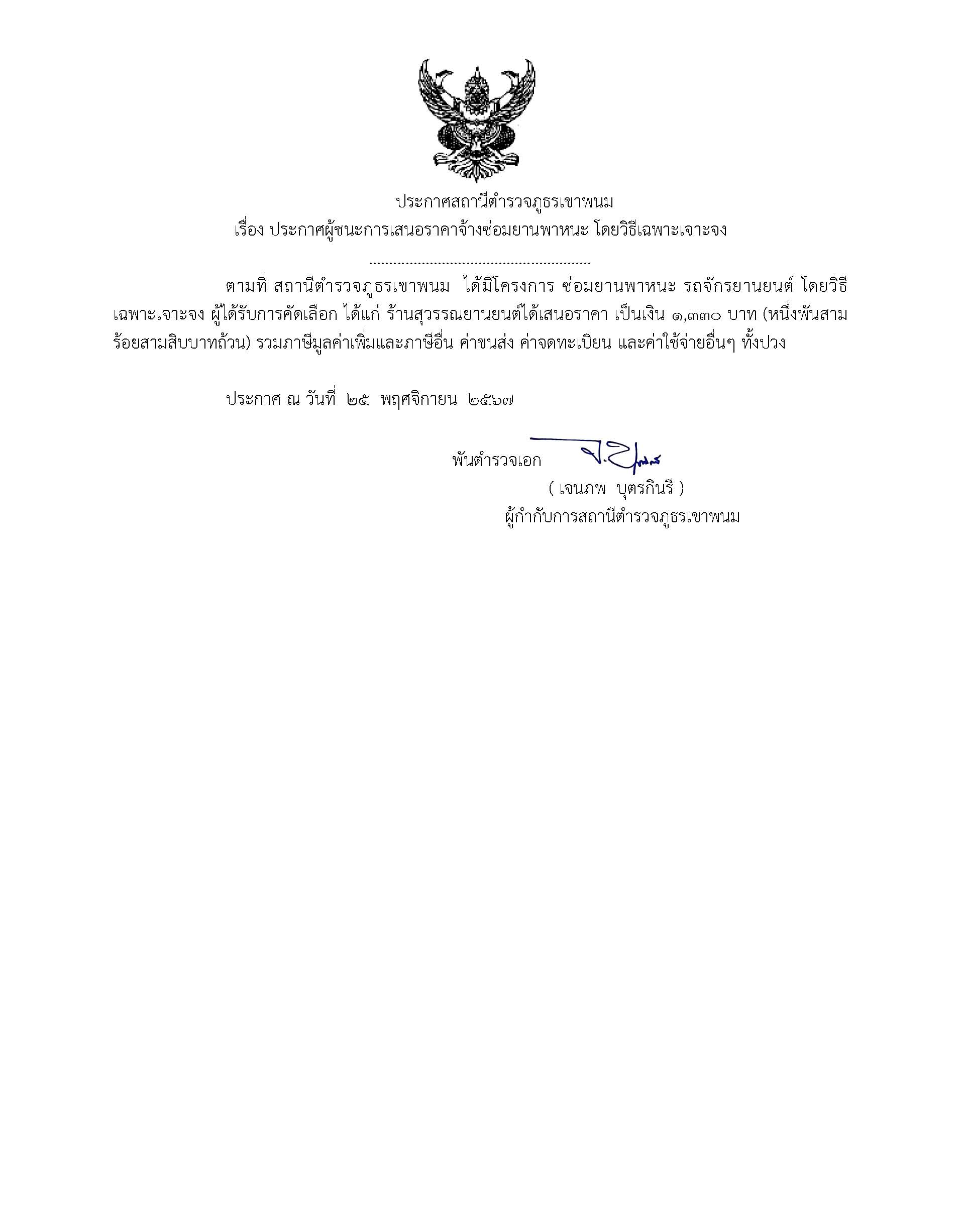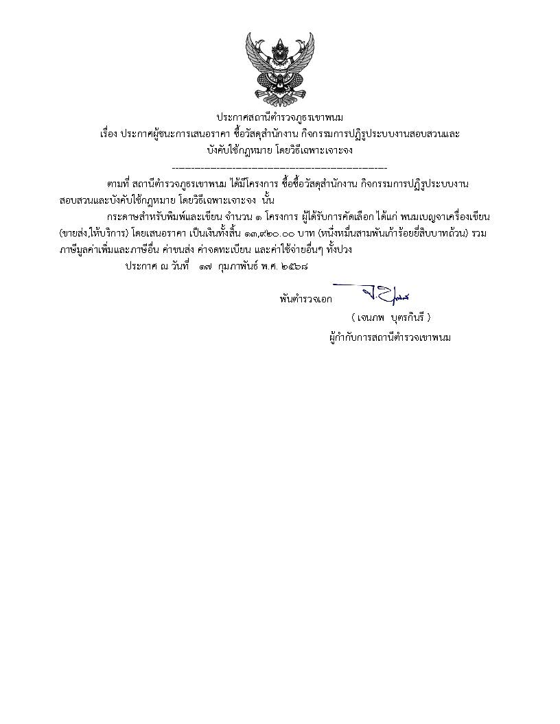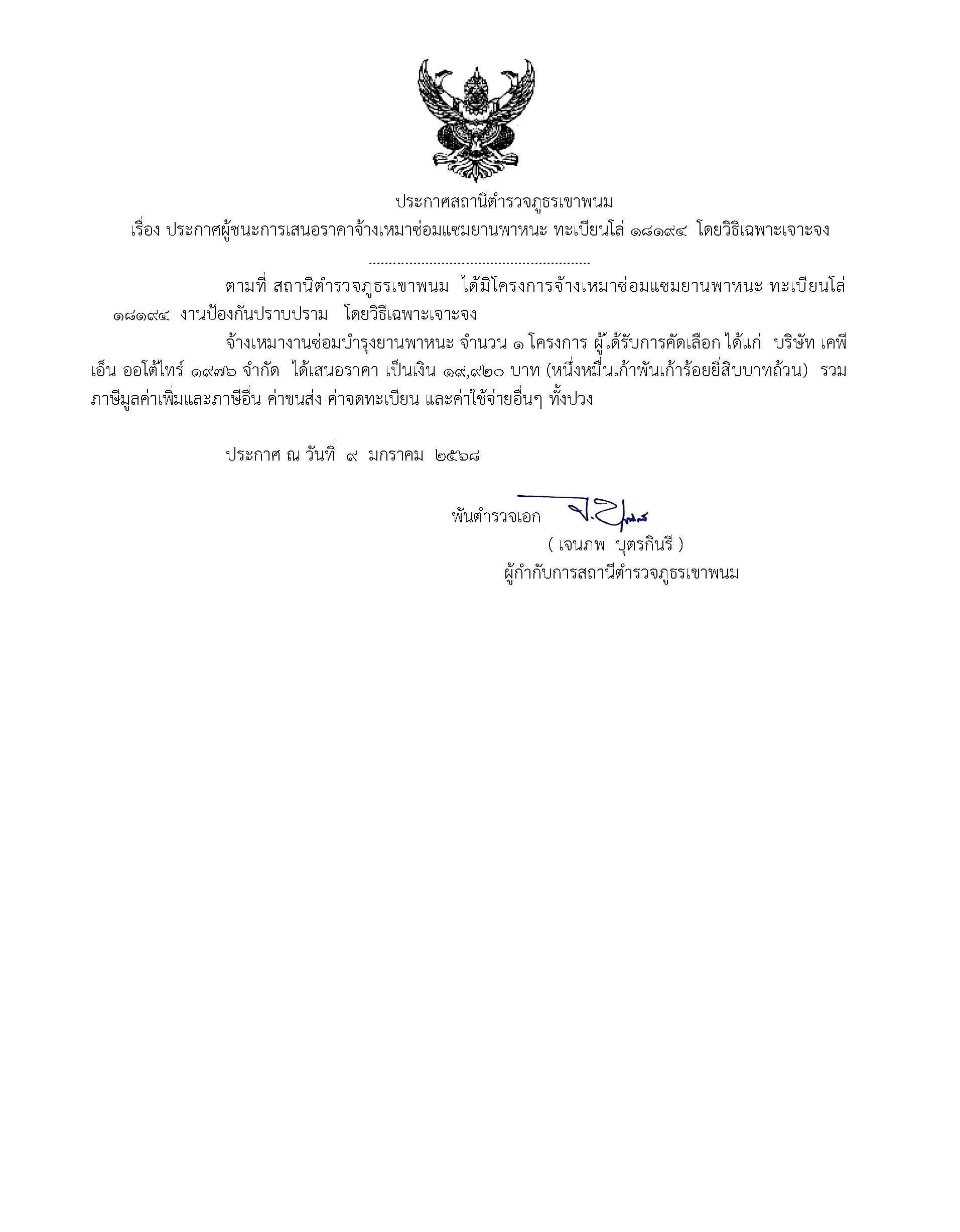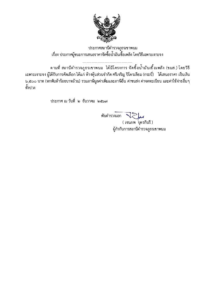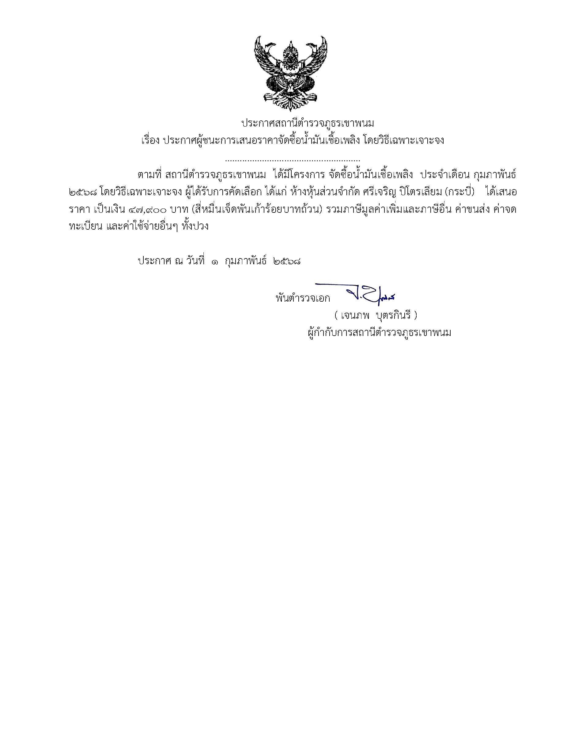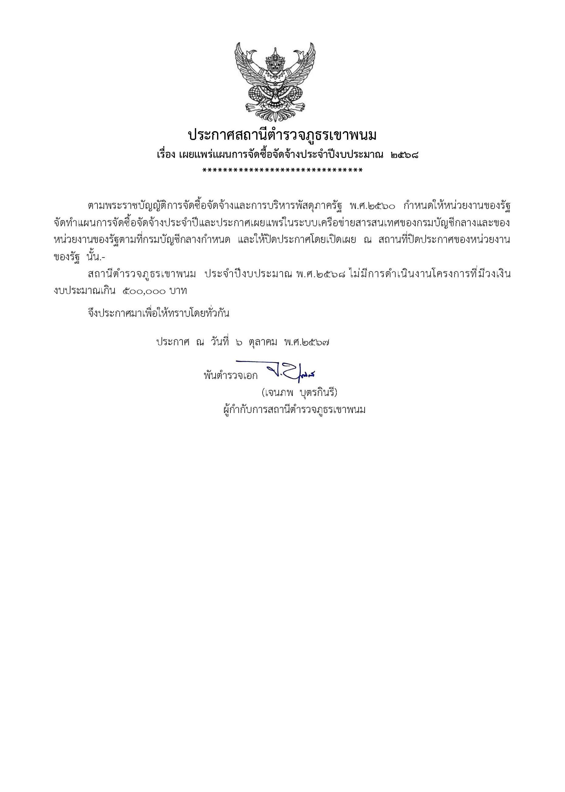 ประกาศต่างๆเกี่ยวกับการจัดซื้อจัดจ้าง ของ สถานีตำรวจภูธรเขาพนม