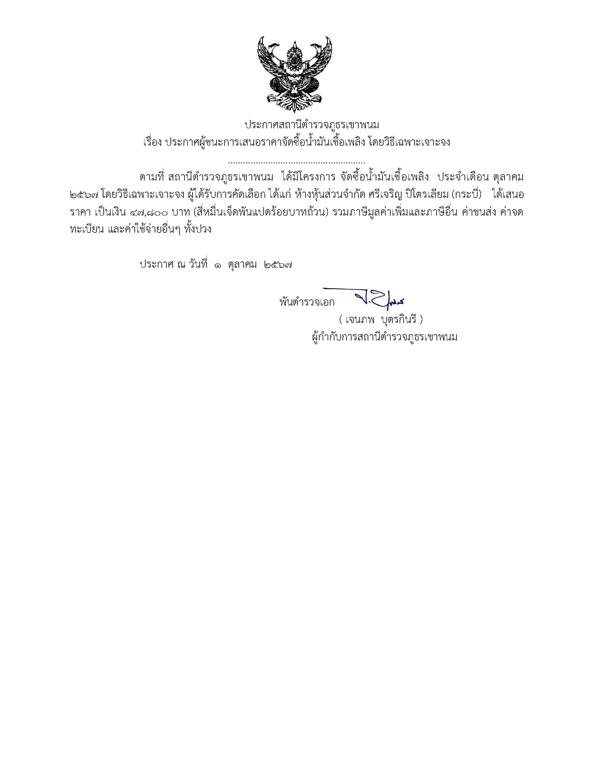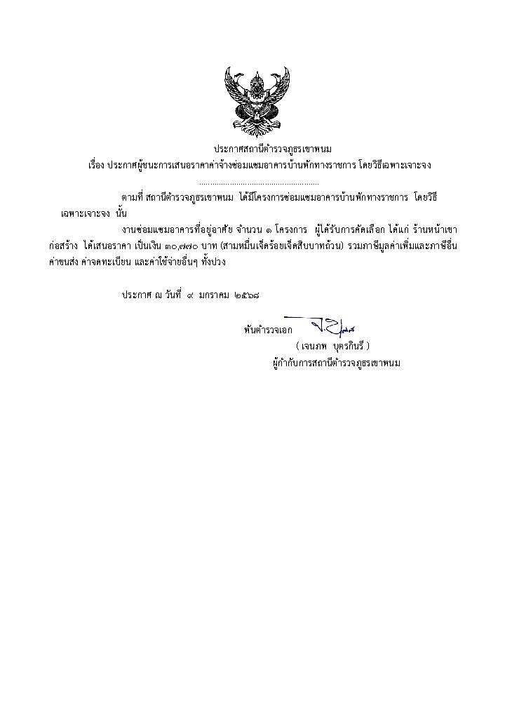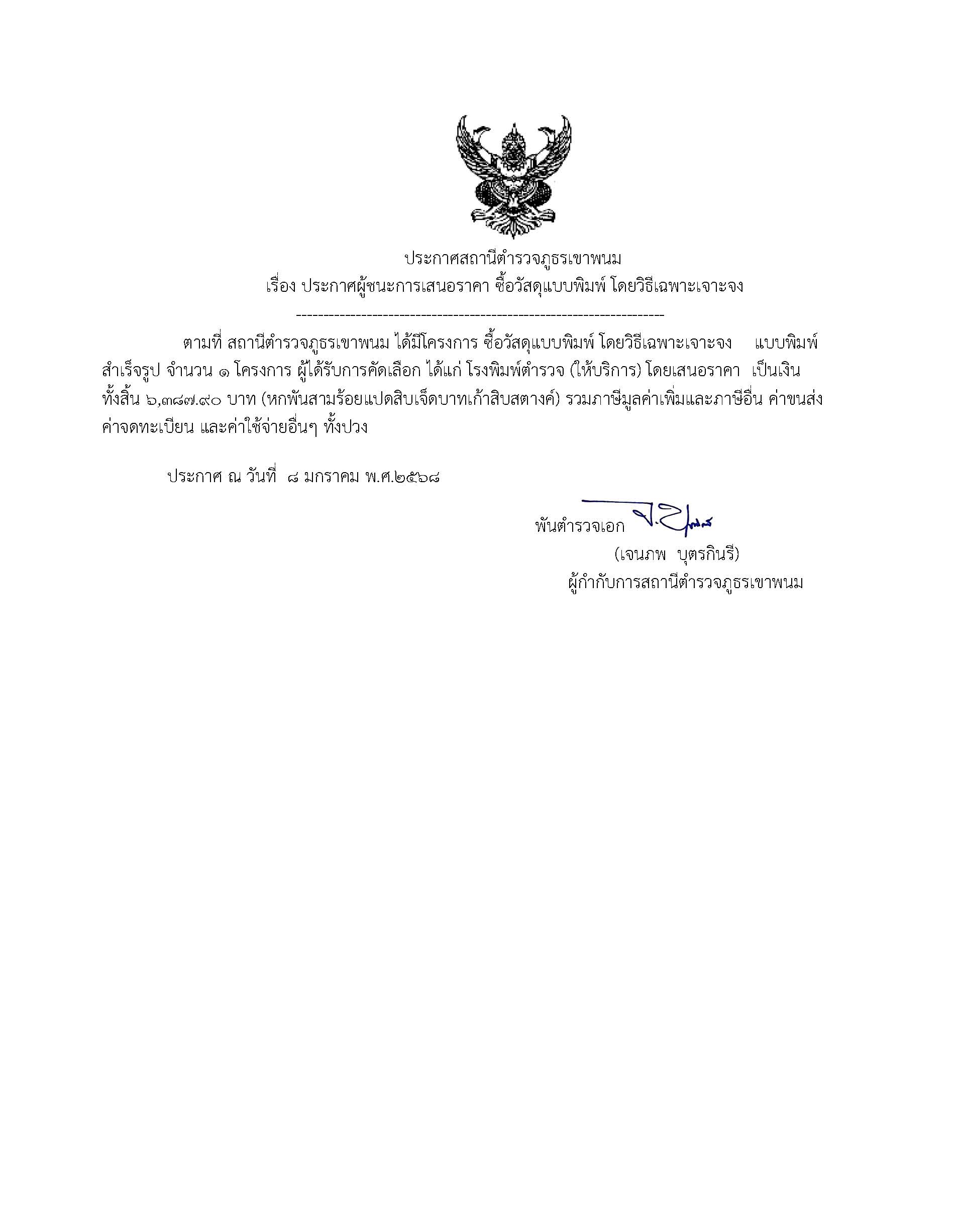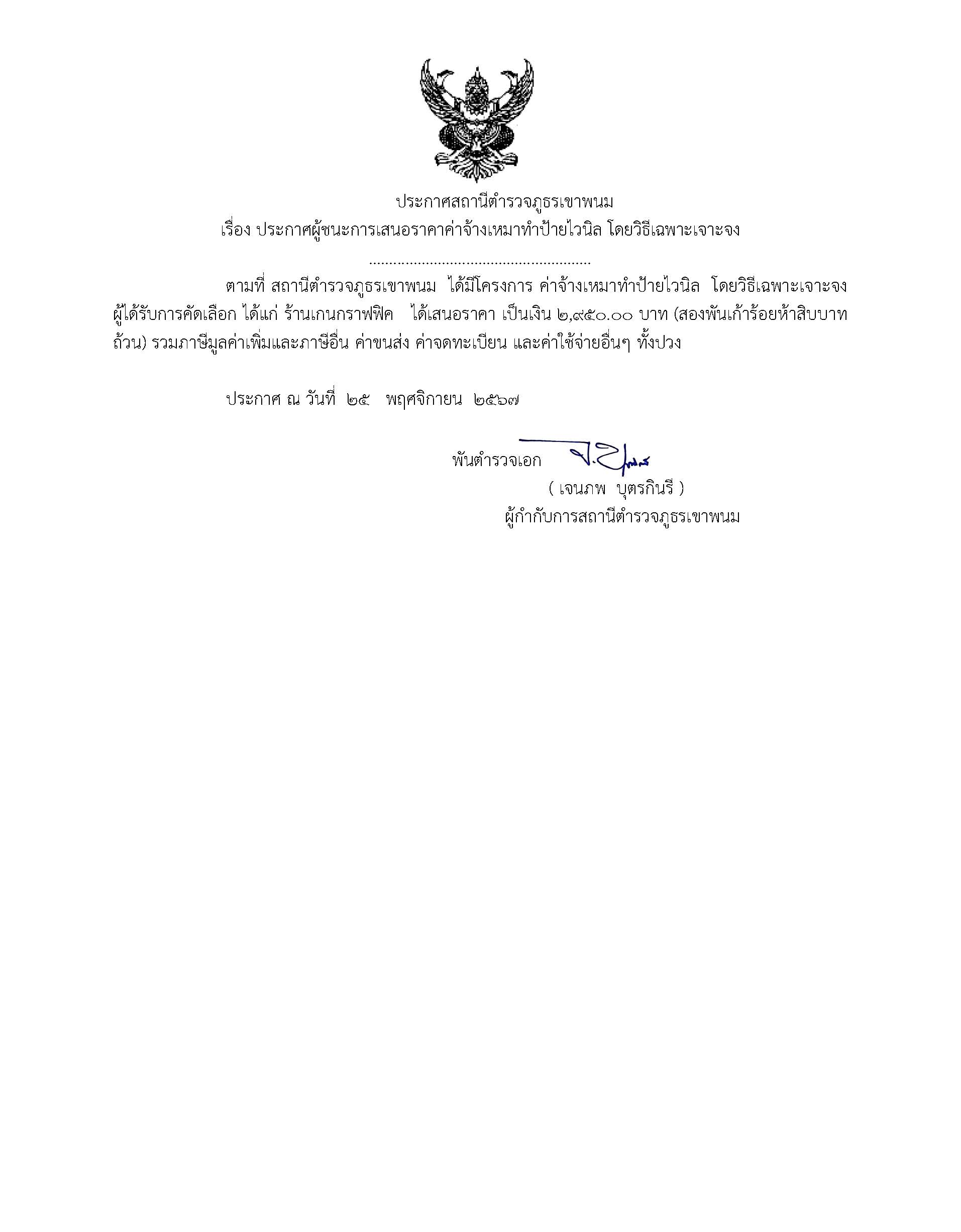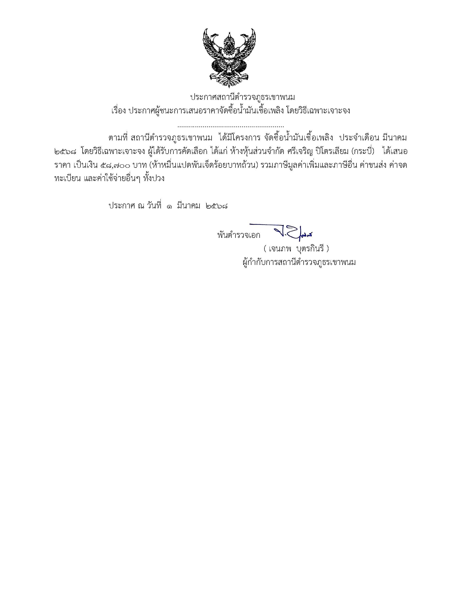 ประกาศต่างๆเกี่ยวกับการจัดซื้อจัดจ้าง ของ สถานีตำรวจภูธรเขาพนม