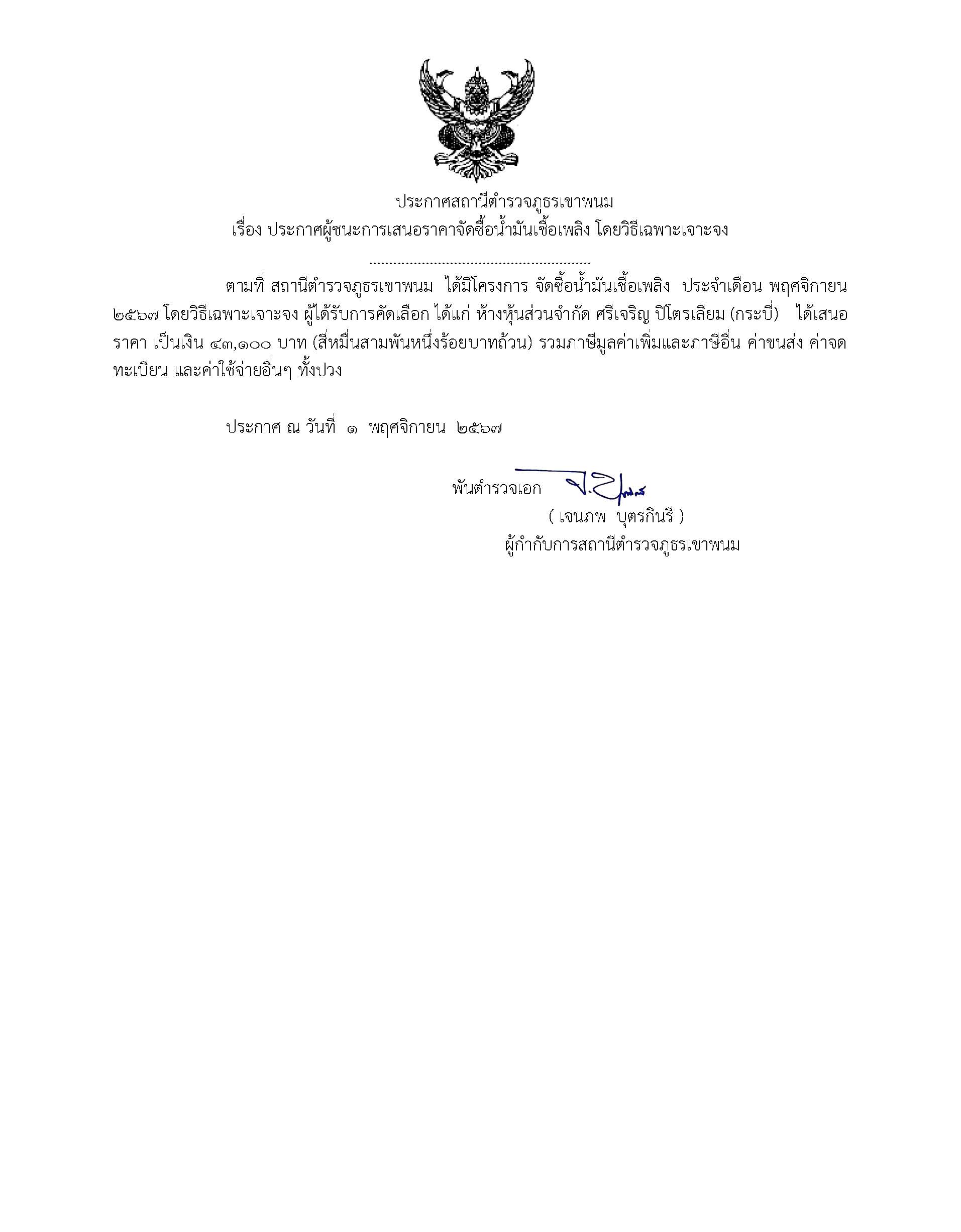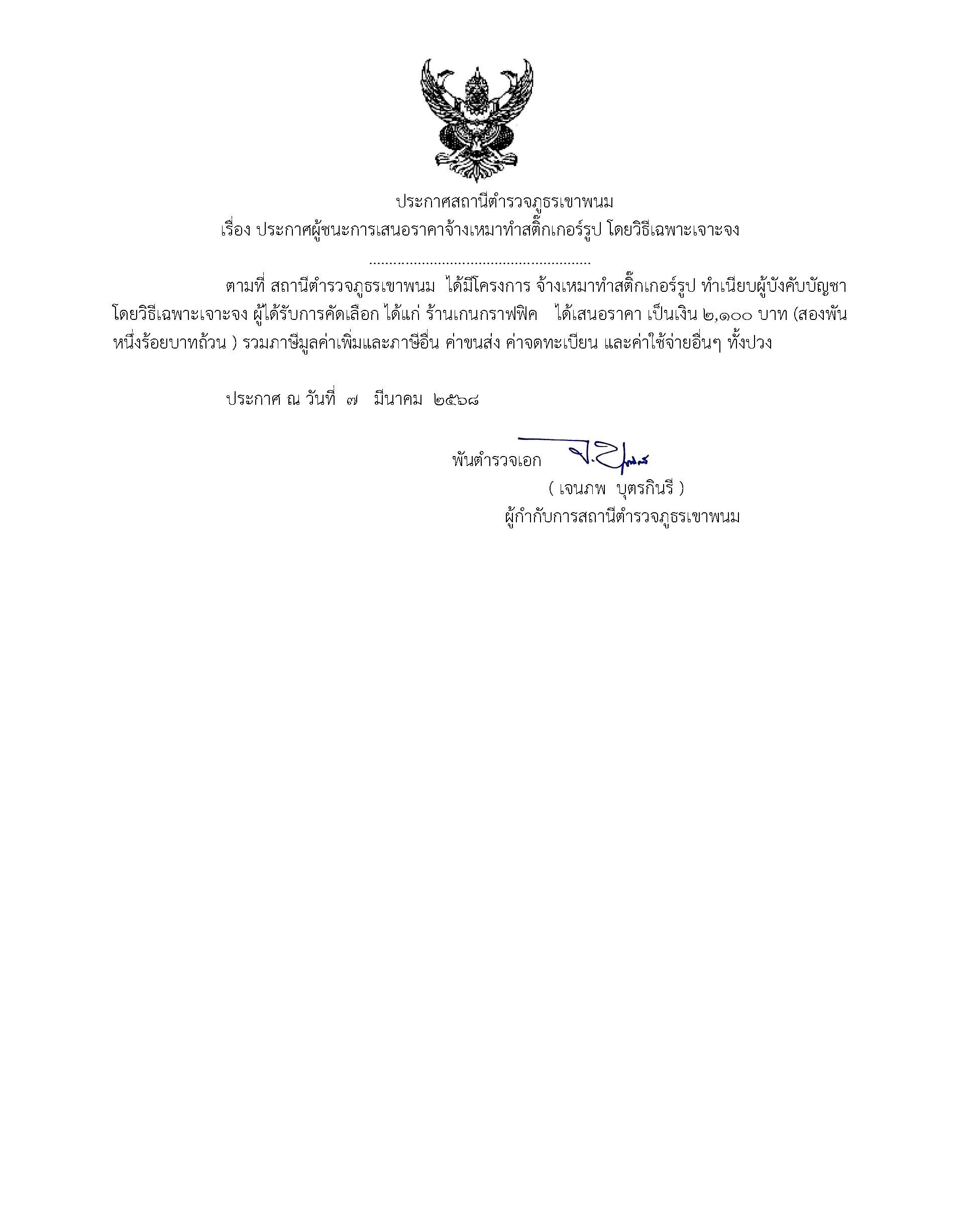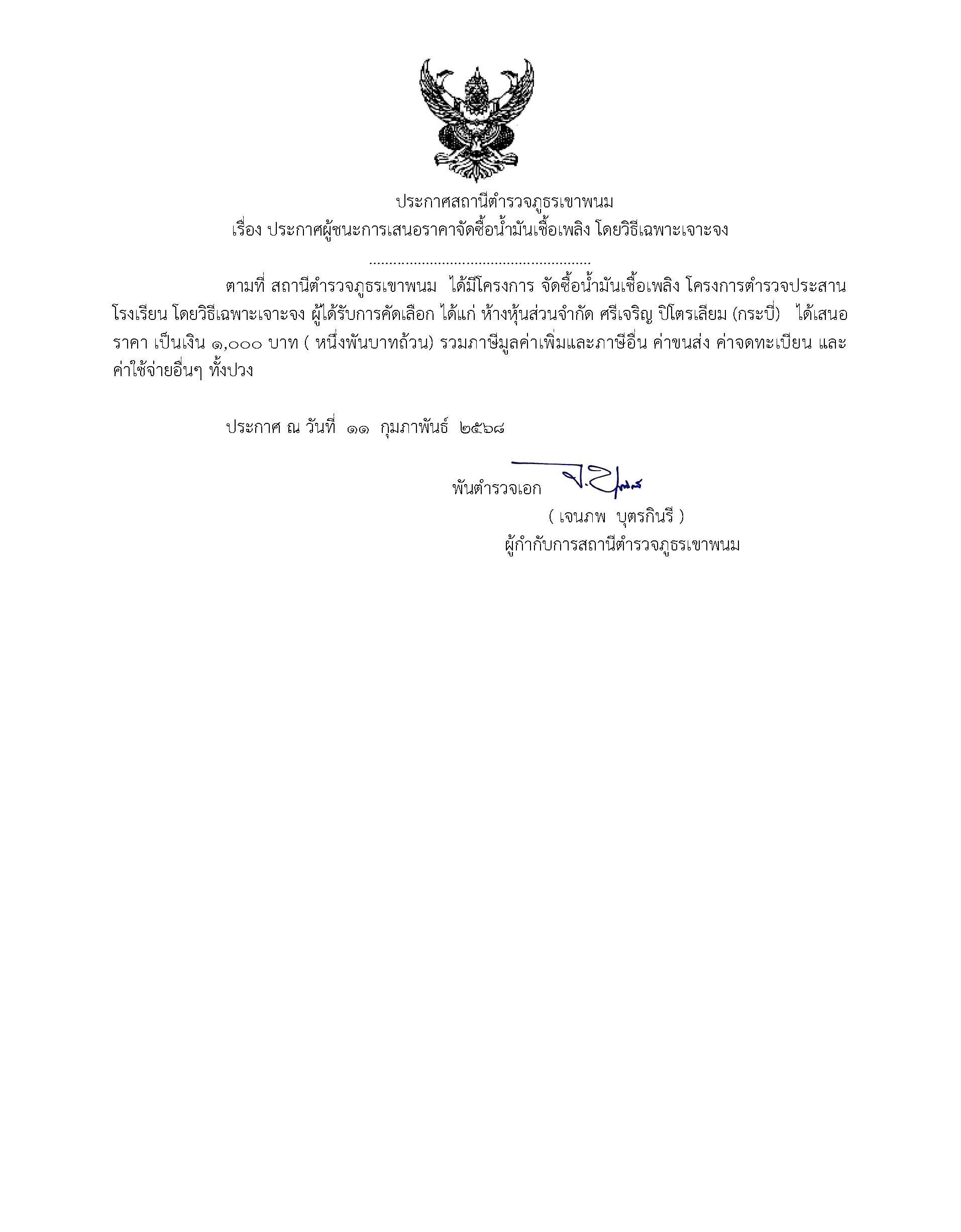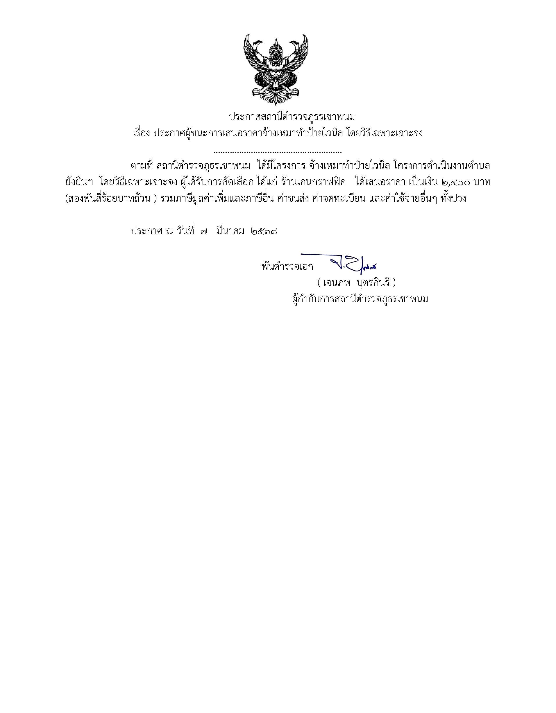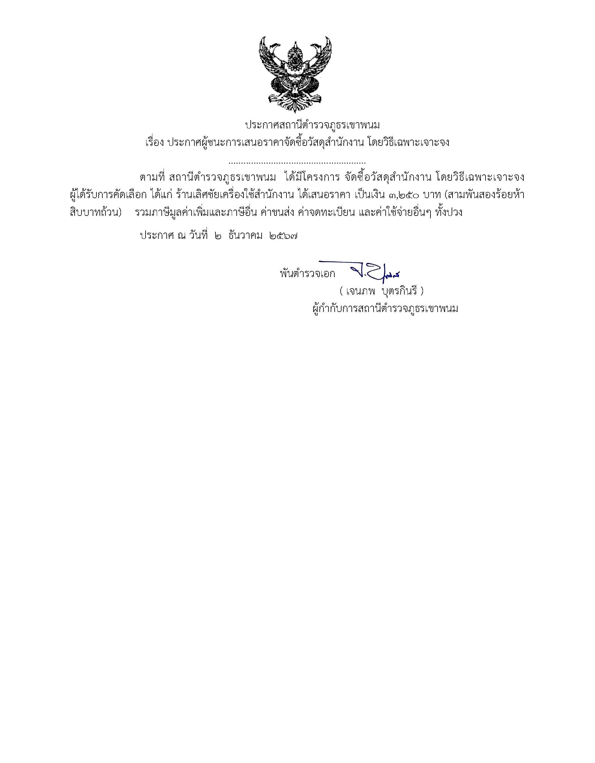 ประกาศต่างๆเกี่ยวกับการจัดซื้อจัดจ้าง ของ สถานีตำรวจภูธรเขาพนม